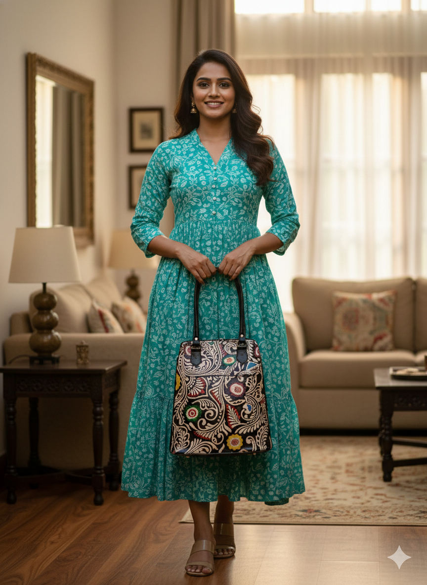 Elevate your everyday style with this stunning Shantiniketan Batik Shoulder Bag, a blend of heritage craftsmanship and contemporary flair. Handcrafted in West Bengal using traditional batik techniques, this bag features intricate wax-resist dyed patterns on genuine leather or canvas. Spacious yet lightweight, it’s perfect for casual outings, work, or travel. Carry a piece of Bengal’s artistic legacy wherever you go.