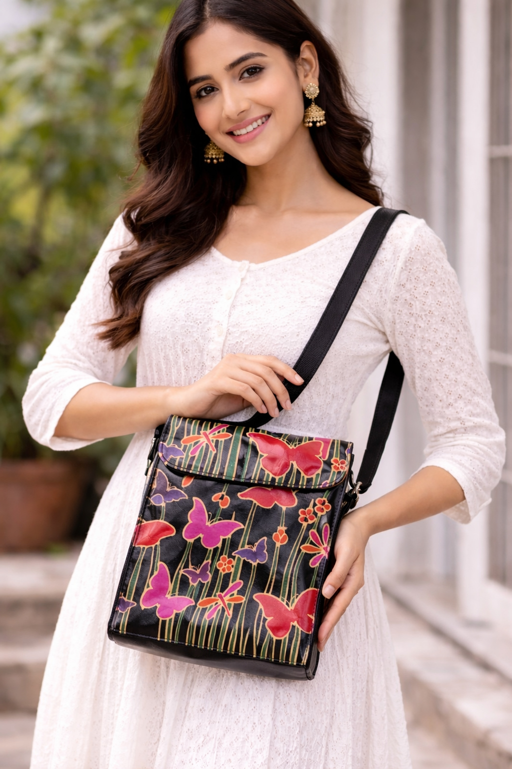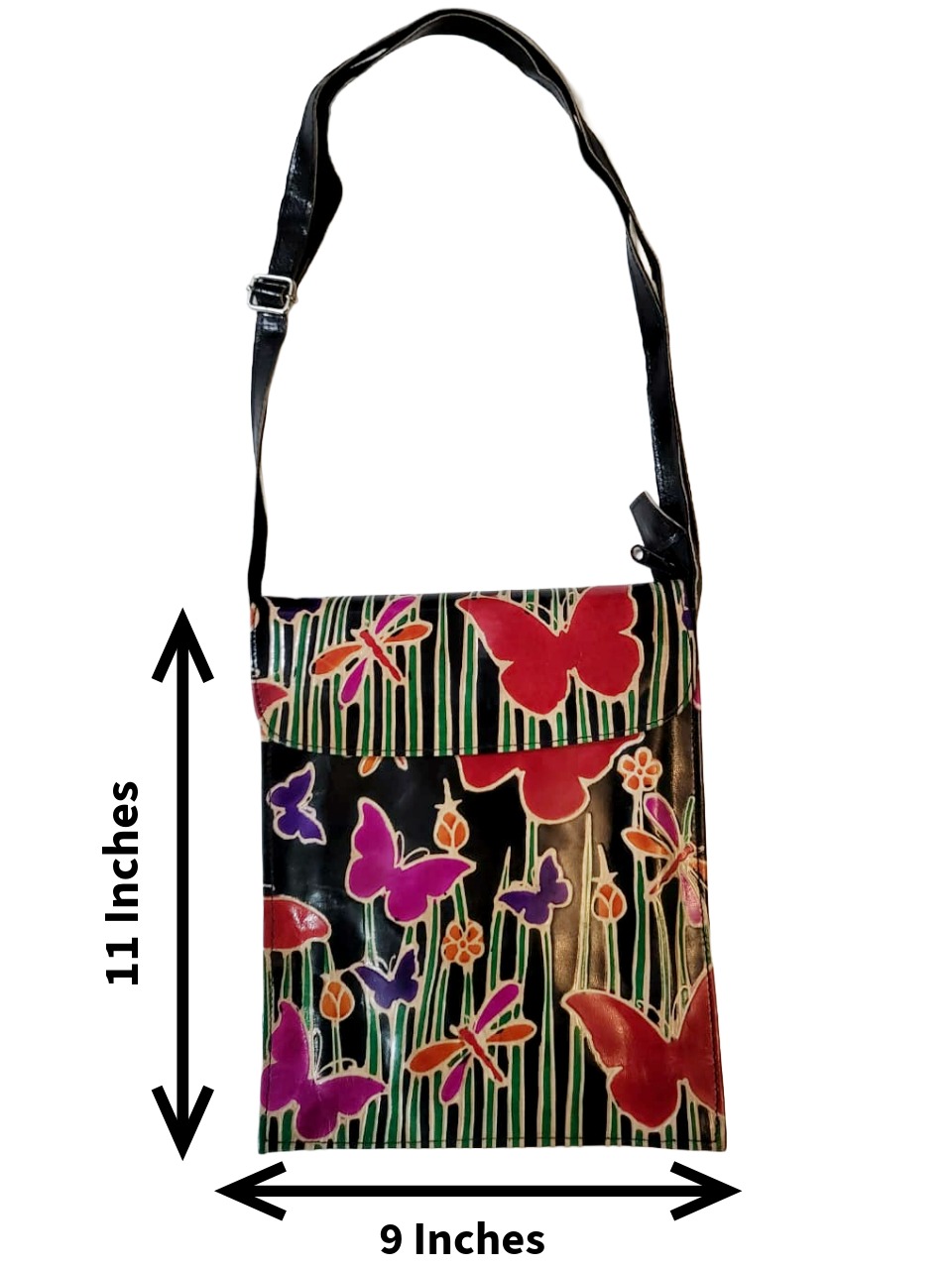 Shantiniketan Printed Crossbody Passport Sling Bag for Women 11 x 9 Inches | Black Butterfly