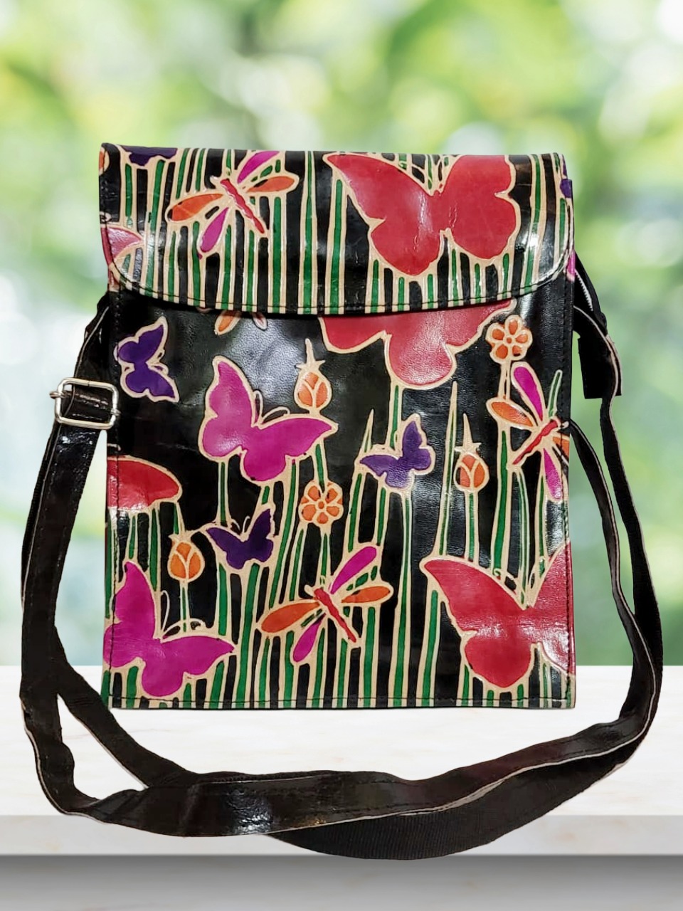 The Shantiniketan Batik Sling Bag is a beautifully handcrafted accessory that showcases the traditional Batik art form on premium leather. Originating from Shantiniketan, West Bengal, India, these bags are a fusion of heritage craftsmanship and contemporary design, making them a unique statement piece for everyday use.