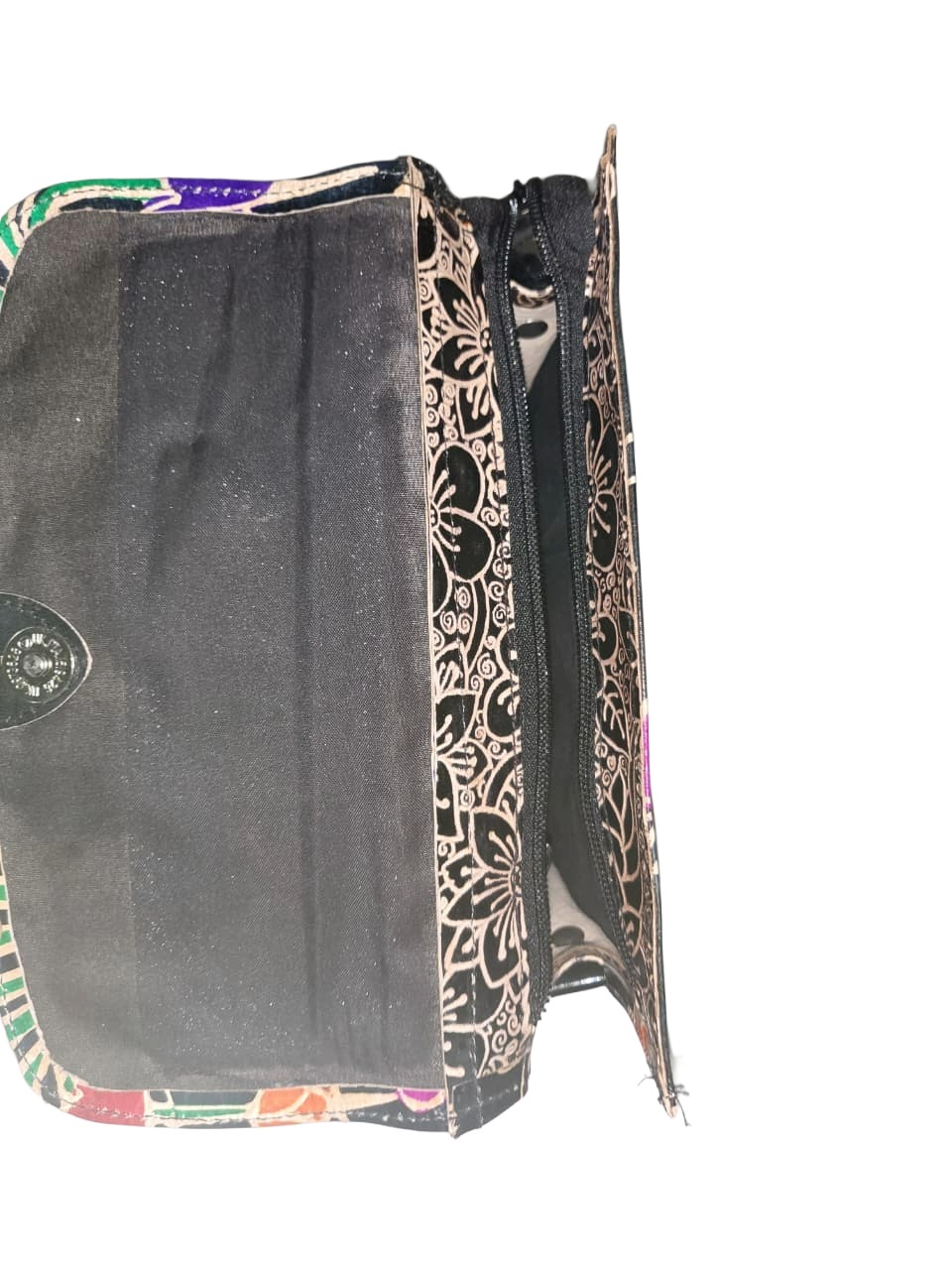 The Shantiniketan Batik Clutch is a stunning handcrafted leather accessory that embodies the rich heritage of Shantiniketan, West Bengal, India. Featuring the traditional batik art technique, this clutch is known for its intricate patterns, vibrant hues, and eco-friendly craftsmanship.