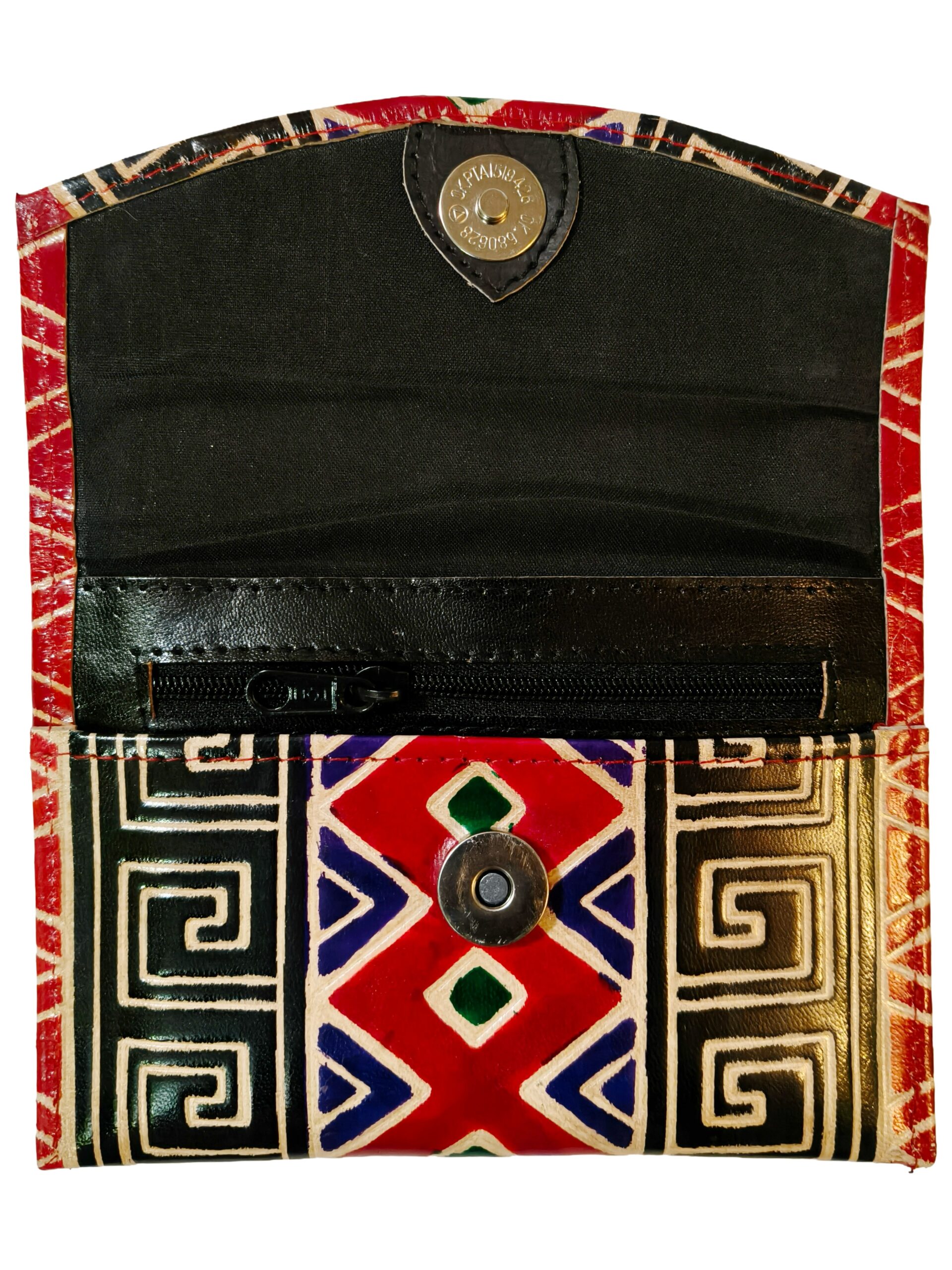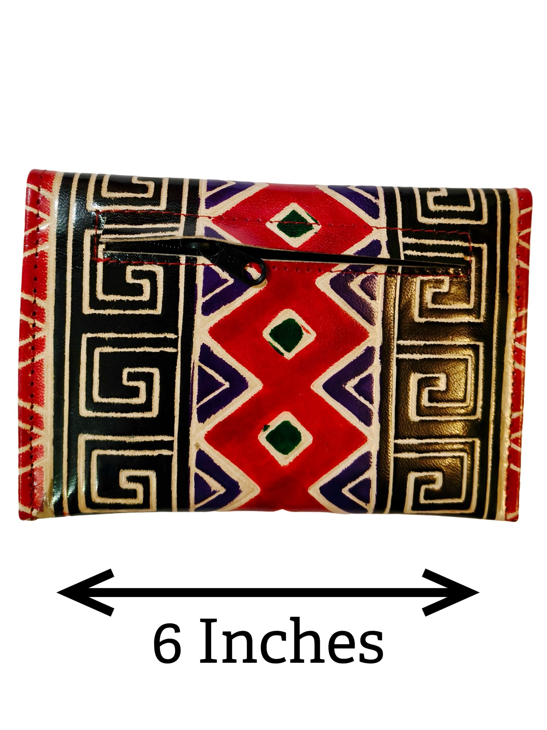 The Shantiniketan 5.5-inch clutch is a beautifully handcrafted leather accessory that showcases the rich artistic heritage of Shantiniketan, West Bengal, India. Known for its intricate embossing, vibrant colors, and traditional Indian motifs, this clutch is both stylish and practical.
